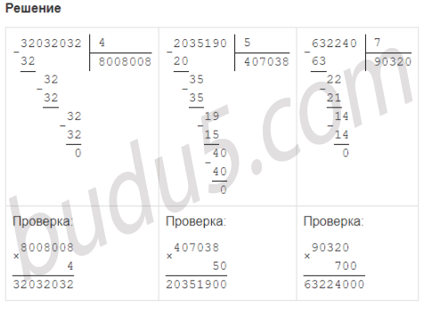 | а) 32032032 : 4 | б) 20351900 : 50 | в) 63224000 : 700 |