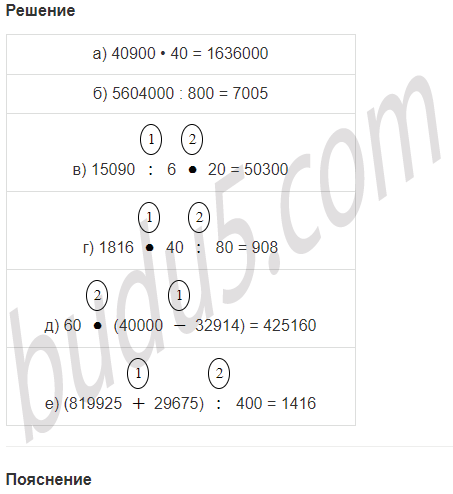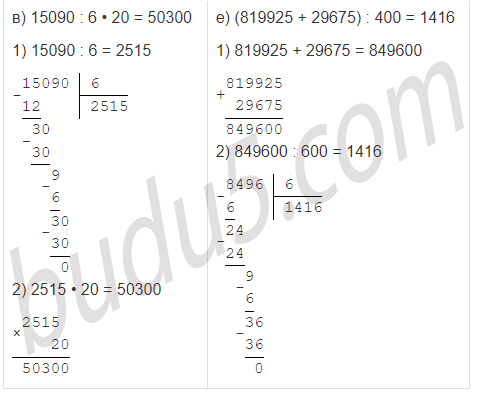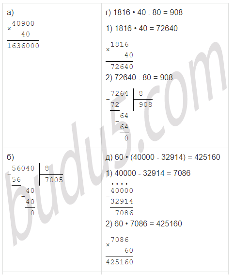 | а) 40900 • 40 | в) 15090 : 6 • 20 | д) 60 • (40000 - 32914) |
