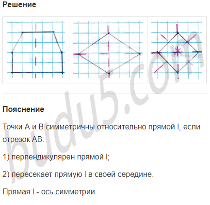 Задание № 10. Придумай и нарисуй на клетчатой бумаге фигуру, имеющую: а) одну ось симметрии; б) две оси симметрии; в) больше двух осей симметрии.