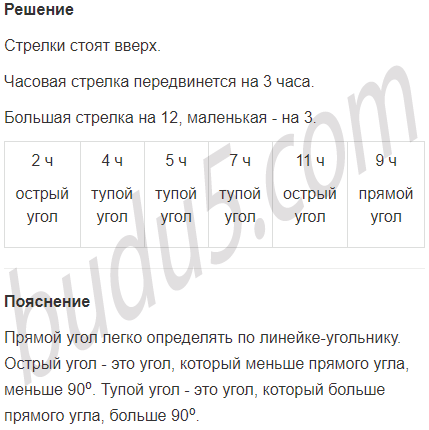 б) Какой угол - прямой, острый или тупой - образуют стрелки часов, если сейчас: