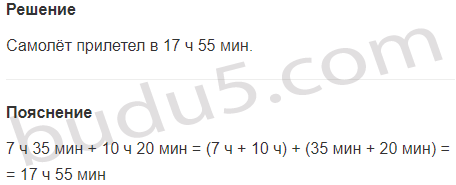 Задание № 6. Самолёт вылетел в 7 ч 35 мин утра, а прилетел через 10 ч 20 мин. В котором часу прилетел самолёт?