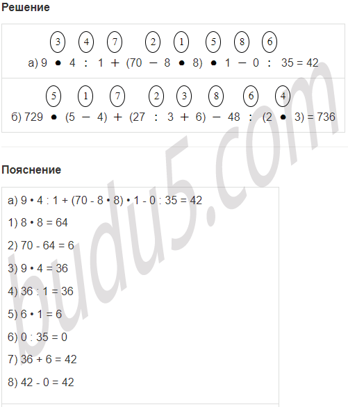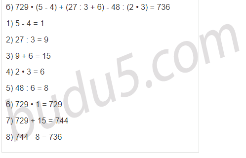 | б) 729 • (5 - 4) + (27 : 3 + 6) - 48 : (2 • 3) |