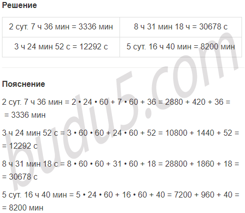 | 3 ч 24 мин 52 с = ... с | 5 сут. 16 ч 40 мин = ... мин |