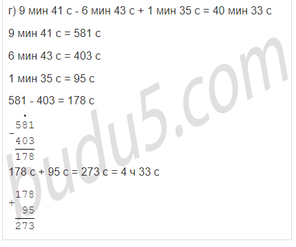 | г) 9 мин 41 с - 6 мин 43 с + 1 мин 35 с |