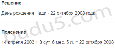 Задание № 4. Надя младше Кости на 5 лет 6 месяцев и 8 дней. День рождения Кости 14 апреля 2003 года. Когда день рождения Нади?