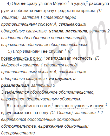 1) Глушков ра(з, с)крыл к..нверт и подойдя (в)плотную к койке внятно медле(н, нн)о и (не)громко прочёл. (В. Гроссман) 2) Собаки махая хвостами и огляд..ваясь на хозяина бежали по сторонам. (Л. Толстой) 3) Каждое утро и вечер он (не)слышно молился отв..рнувшись от всех и глядя в пол. (В. Шаламов) 4) Она (не)сразу узнала Медею а узнав ра(з, с)кинула руки и побежала (на)встречу с радос(?)ным криком. (Л. Улицкая) 5) Егор Иванович (не)слушал а повернувшись к окну ра(з, с)гляд..вал мес(?)ность. (Г. Андреев) 6) Татьяна мыла пол и по(?)скользнувшись и охнув вдруг ок..залась на полу. (С. Осипов)