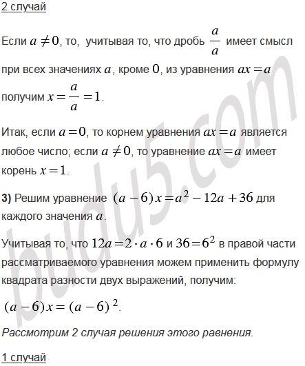 Для каждого значения решите уравнение: