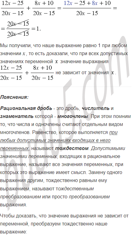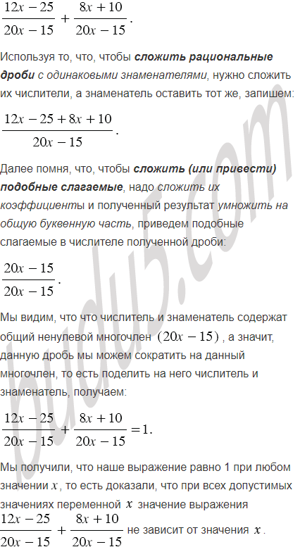 Докажите, что при всех допустимых значениях переменной значение выражения не зависит от значения .