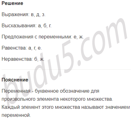 Задание № 5. Найди среди записей: 1) выражения; 2) высказывания; 3) предложения с переменными; 4) равенства; 5) неравенства.