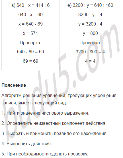 | в) 640 - х = 414 : 6 | е) 3200 : у = 640 : 160 |