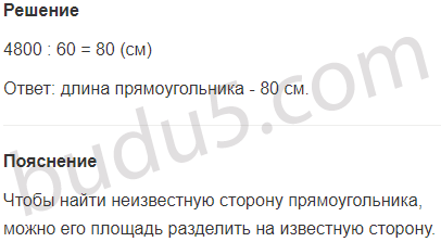Задание № 3. Чему равна длина прямоугольника, если его площадь 4800 см2, а ширина 60 см?