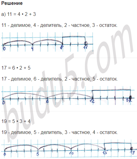 б) Запиши все три равенства одной буквенной формулой, обозначая делимое а, делитель b, частное с и остаток r: