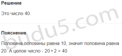 Задание № 14. Половина половины числа равна 10. Какое это число?