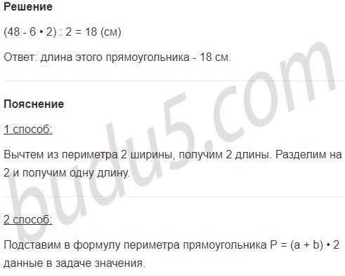 Задание № 5. Периметр прямоугольника равен 48 см, а его ширина - 6 см. Найди длину этого прямоугольника.