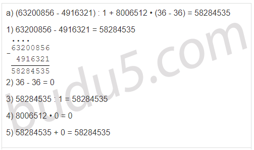 | а) (63200856 - 4916321) : 1 + 8006512 • (36 - 36) |