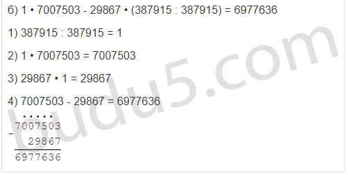 | б) 1 • 7007503 - 29867 • (387915 : 387915) |