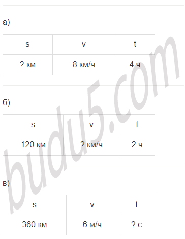 Задание № 4. Найди неизвестные значения величин по формуле пути s = v • t: