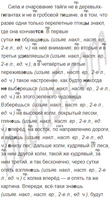 Сила и очарование тайги не в деревьях-г..гантах и не в гробовой т..шине, а в том, что разве одни только перелетные птиц., знают, где она кончает(?)ся. В первые сутки6 (не)обраща..шь на неё внимания; во вторые и в третьи уд..вляешься, а в четвёртые и пятые пережива..шь такое настроение, как будто (ни)когда (но)выб..решься из этого зелёного чудовища. Взберёшься на высокий холм, покрытый лесом, глян..шь (в)серёд, на восток, по направлению дороги, и вид..шь (в)низу лес, дальше холм, кудрявый от леса, за ним другой холм, такой же кудрявый, за ним третий, и так бесконечно; через сутки опять взгляп..шь с холма вперёд — и опять та же картина. Впереди, всё-таки зна..шь, будут Ангара и Иркутск, а что за лесами, которые тянут(?)ся по сторонам дороги на север и юг, и на сколько сотен вёрст они тянут(?)ся, неизвестно даже ямщикам и кр..стьянам, родивш..мся в тайге.