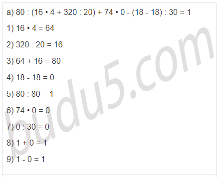| а) 80 : (16 • 4 + 320 : 20) + 74 • 0 - (18 - 18) : 30 |