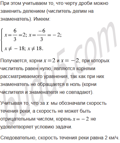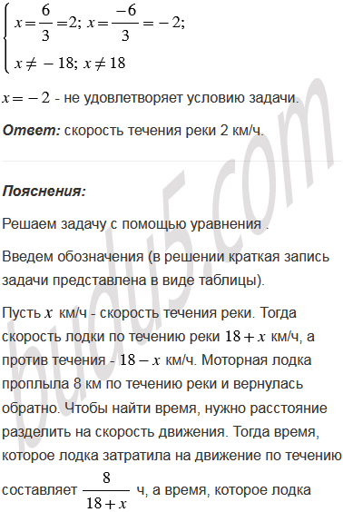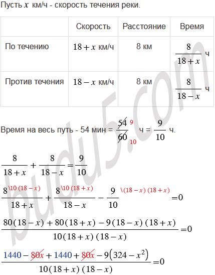 Моторная лодка проплыла 8 км по течению реки и вернулась обратно, потратив на весь путь 54 мин. Найдите скорость течения реки, если собственная скорость лодки равна 18 км/ч.