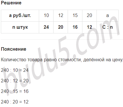 Задание № 4. У Игоря 240 руб. Сколько тетрадей он сможет купить, если их цена 10 руб., 12 руб., 15 руб., 20 руб., а руб.? Заполни таблицу. Запиши формулу зависимости количества купленных тетрадей n от их цена а.