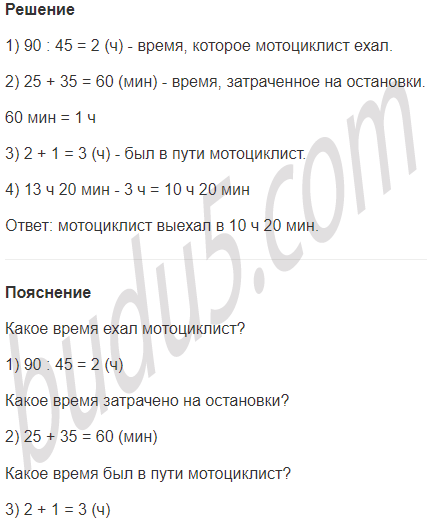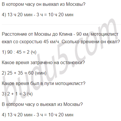 Задание № 7. Мотоциклист выехал из Москвы в Клин со скоростью 45 км/ч. В дороге он сделал две остановки: одну на - 25 мин, а вторую - на 35 мин. В Клин мотоциклист прибыл в 13 ч 20 мин. В котором часу он выехал из Москвы, если расстояние от Москвы до Клина ровно 90 км?