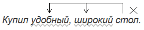 одинаково относятся к определяемому слову; произносятся с перечислительной интонацией, допускают вставку союза и Купил удобный, широкий стол.