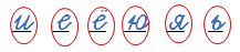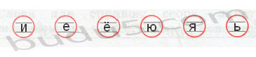 Впишите в кружки буквы, которые могут указывать на мягкость предшествующего согласного звука в слове.