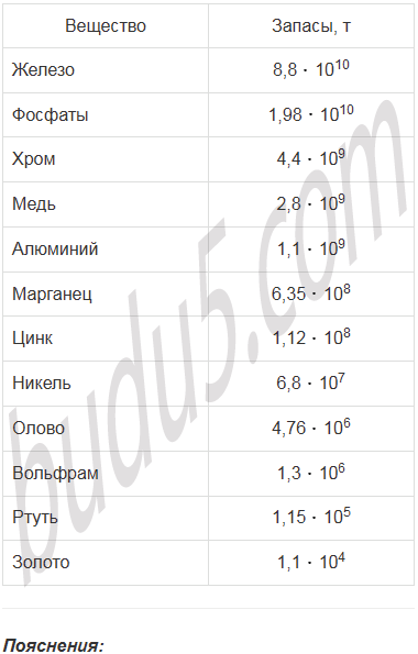 В таблице приведены запасы некоторых веществ в минеральных ресурсах мира.