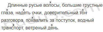 Волосы (длинные, русые, карие), глаза (большие, коричневые, грустные), (одеть, надеть) очки, (доверчивый, доверительный) тон разговора, похвалить за (поступок, проступок), транспорт (водяной, водный, водянистый), день (ветреный, ветряной, ветряный).