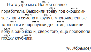 В это утро мы с Вовкой славно пор..ботали. Вык..сили траву под окошками, засыпали с..мена и крупу в мног..численные т..релочки и ч..репушки для птиц, см..нили воду в баночках и, сверх того, ещё проп..лоли грядку1 клубники.