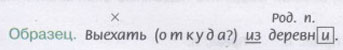 1. Выехать из (город, Москва, Томск). Возвратиться из (библиотека, школа, Калуга, Крым). Выйти из (класс, магазин, вагон).