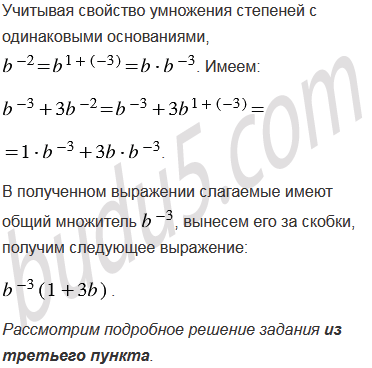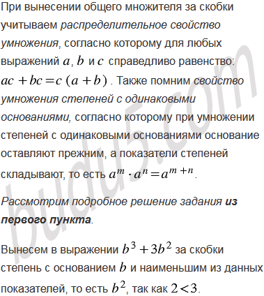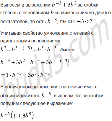 Вынесите за скобки степень с основанием b и наименьшим из данных показателей: