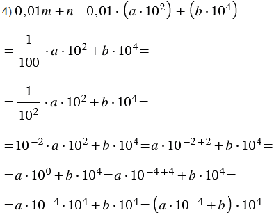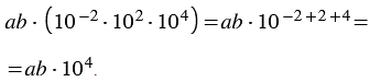Учитывая свойство умножения степеней с одинаковыми основаниями, 10-2102 = 10-2+2 = 100 = 10-4+4 = 10-4104, получаем следующее выражение: