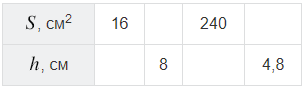 Объём прямоугольного параллелепипеда равен 48 см3. Заполните таблицу, в первой строке которой указана площадь его основания, а во второй - высота.