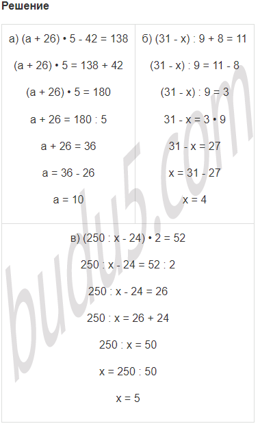 а) Кто Матроскин задумал число, прибавил его к числу 26, сумму умножил на 5 и из полученного произведения вычел 42. В результате у него получилось 138. Какое число задумал Матроскин?