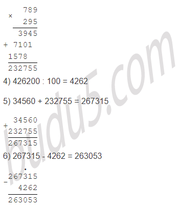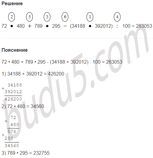 72 • 480 + 789 • 295 - (34188 + 392012) : 100