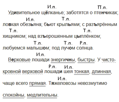 Уд..вительное щ..лканье; заботятся о птен(?)чиках; ло..кая обез(?)яна; б(?)ют крыл(?)ями; с раз(?)ярённым хищником; над вз(?)ерошенным ц..плёнком; любуемся малыш..м; под луч..м солнца.