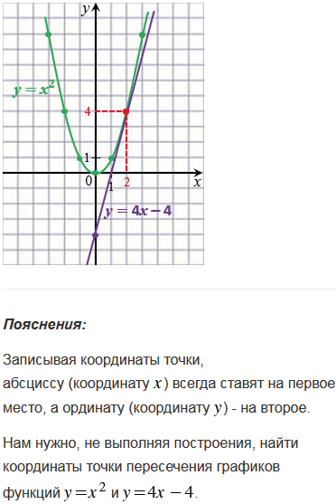 Не выполняя построения, найдите координаты точек пересечения графиков функций