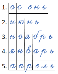 Прочитайте. Впишите в клетки слова, соответствующие данным значениям. Каждое такое слово заканчивается мягким согласным звуком.