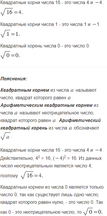 Чему равен квадратный корень из числа 16; из числа 1; из числа 0? Чему равен арифметический квадратный корень из этих чисел?