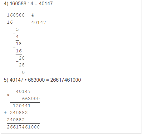 | б) 908 • 132 | г) 4620 • 5040 | е) 24040000 : 800 |