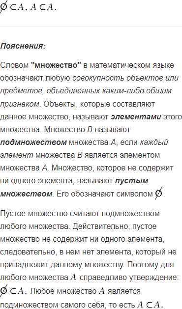 Пусть . Какие два разных подмножества всегда имеет множество ?