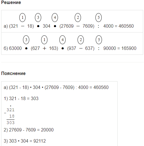 | а) (321 - 18) • 304 • (27609 - 7609) : 4000; |
