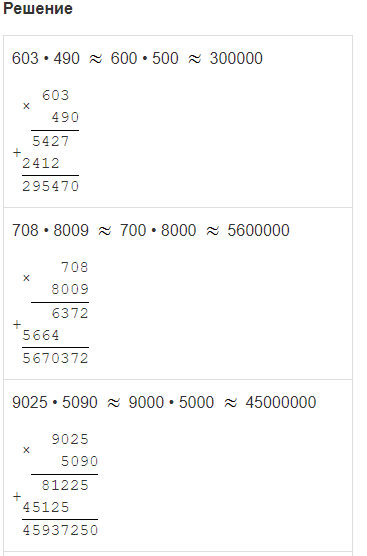 Задание № 3. Сделай прикидку умножения, а затем вычисли ответ:
