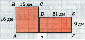 16 • (15 + 21) - 21 • (16 - 9) = 576 - 147 = 429 (дм2)