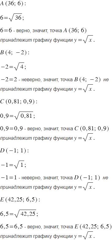 Не выполняя построения, определите, через какие из данных точек проходит график функции :