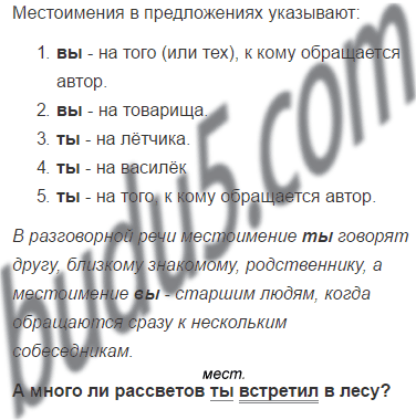 А много ль рассветов ты встретил в лесу? Местоимение ты указывает на того, к кому обращаются с речью.