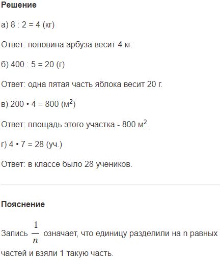 а) Арбуз весит 8 кг. Сколько весит половина арбуза?