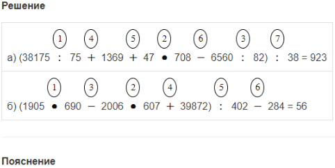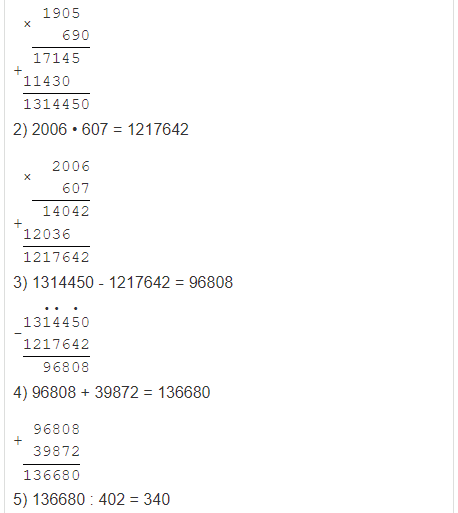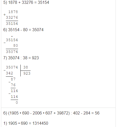 | б) (1905 • 690 - 2006 • 607 + 39872) : 402 - 284. |